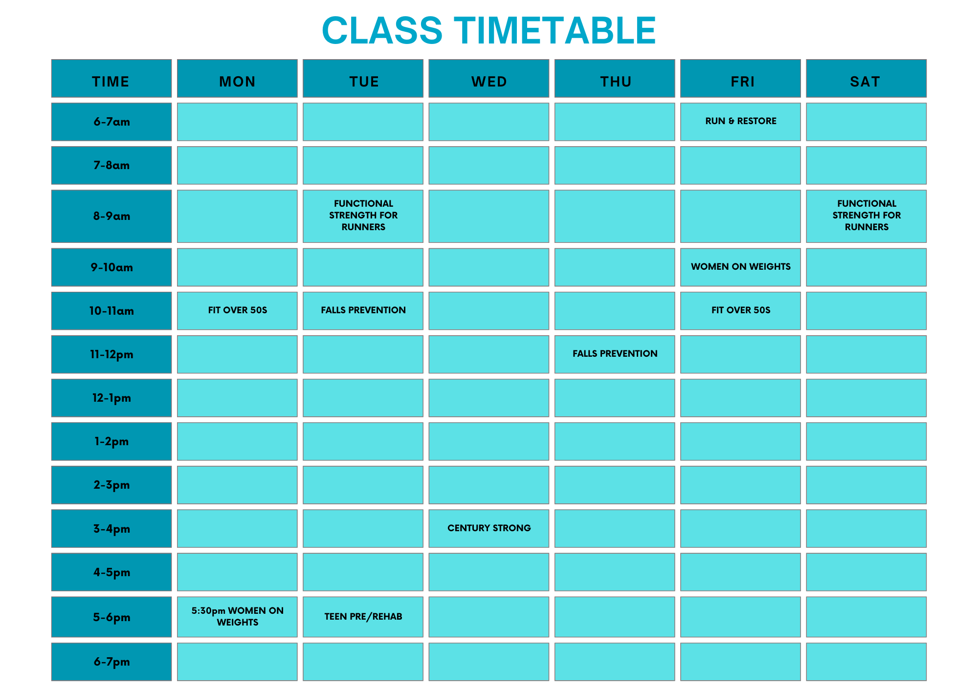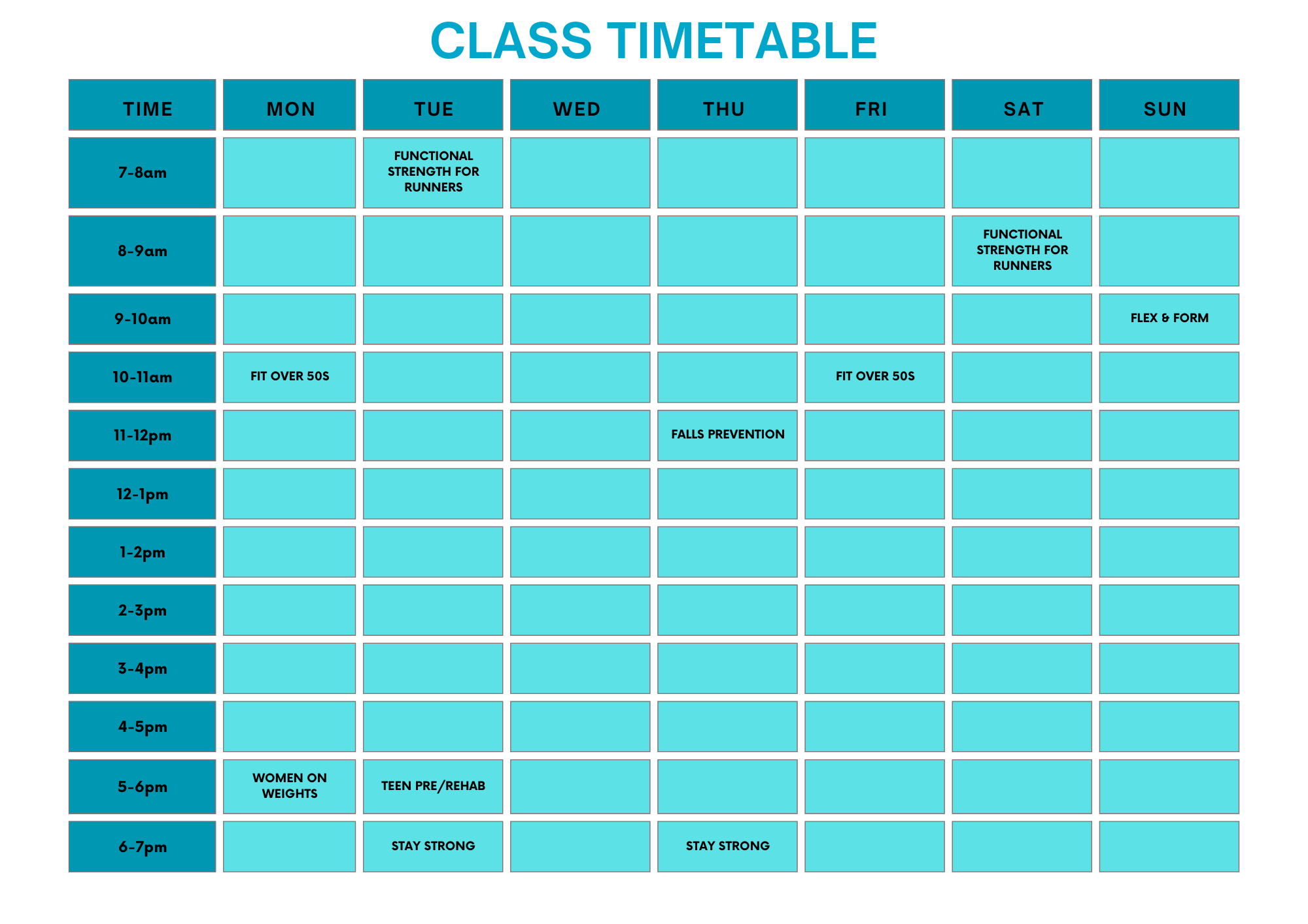 Find our Class Timetable here for days and times of all the classes held in the Physio Atelier Gym.